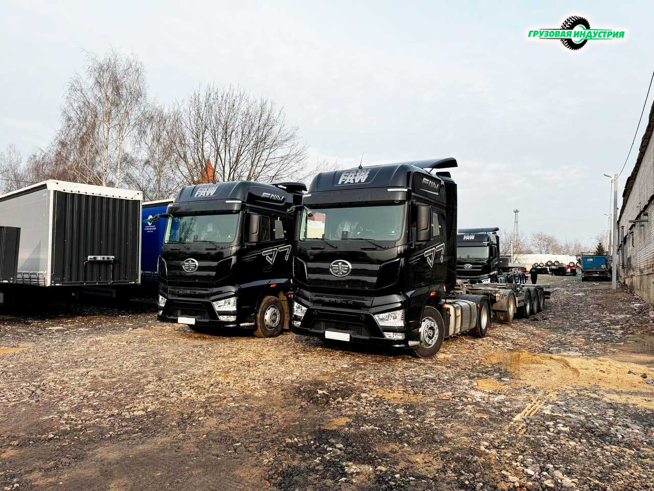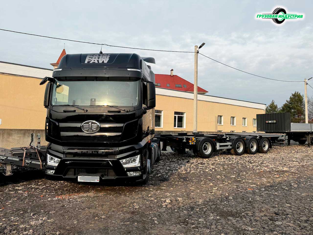 Отгрузка 5-и сцепок: тягачи Faw F7 4x2 и 5-ти универсальных полуприцепов контейнеровозов Тонар К4-U в Ярославскую область.