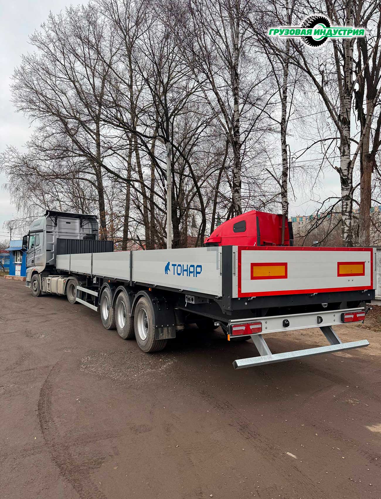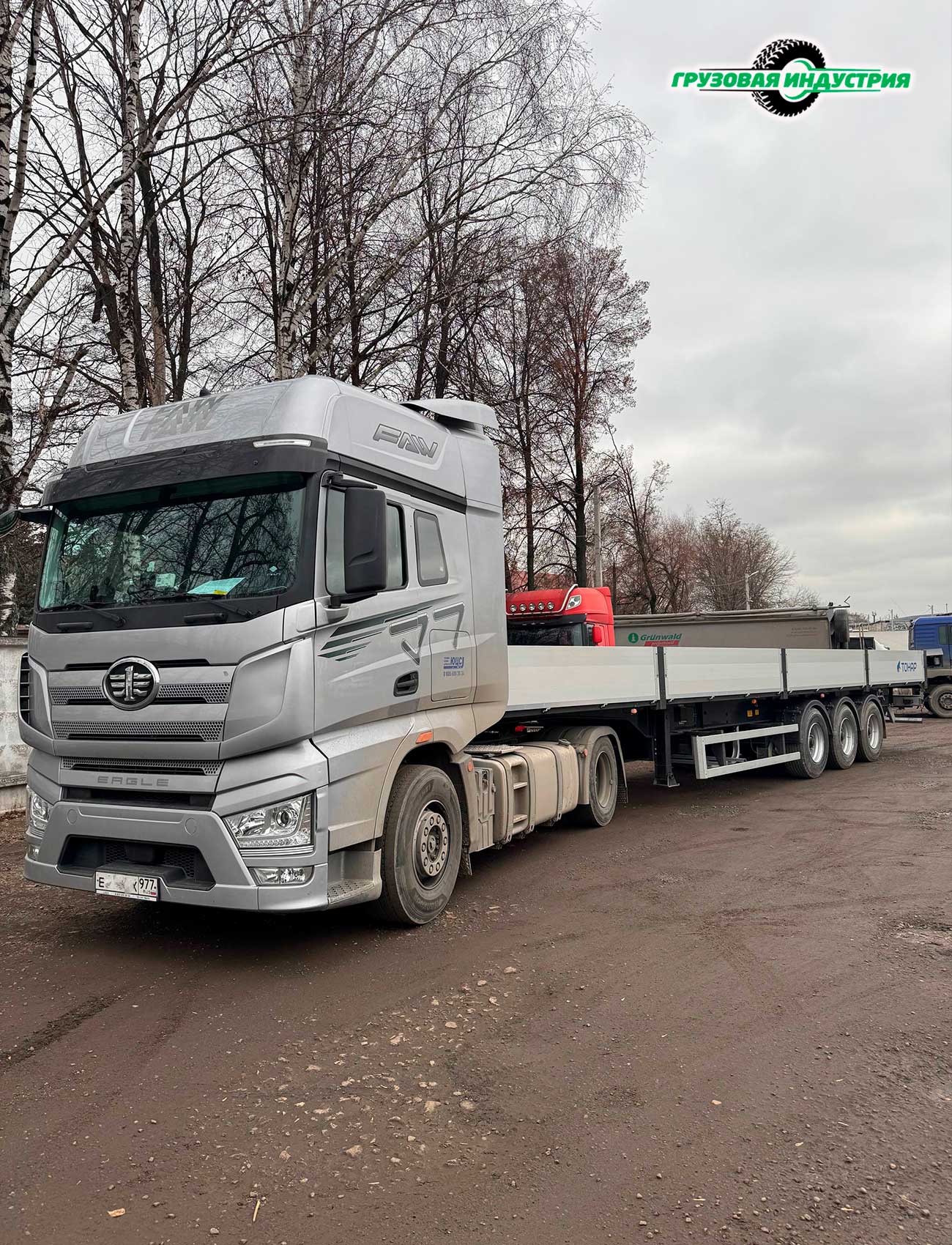 Отгрузка сцепки тягач FAW J7 4x2 и полуприцепа бортовая платформа Тонар B3-13K в Москву 14 ноября 2025г.
