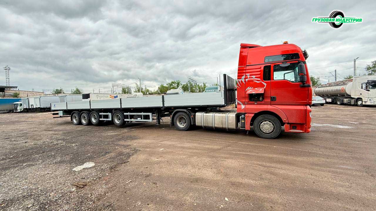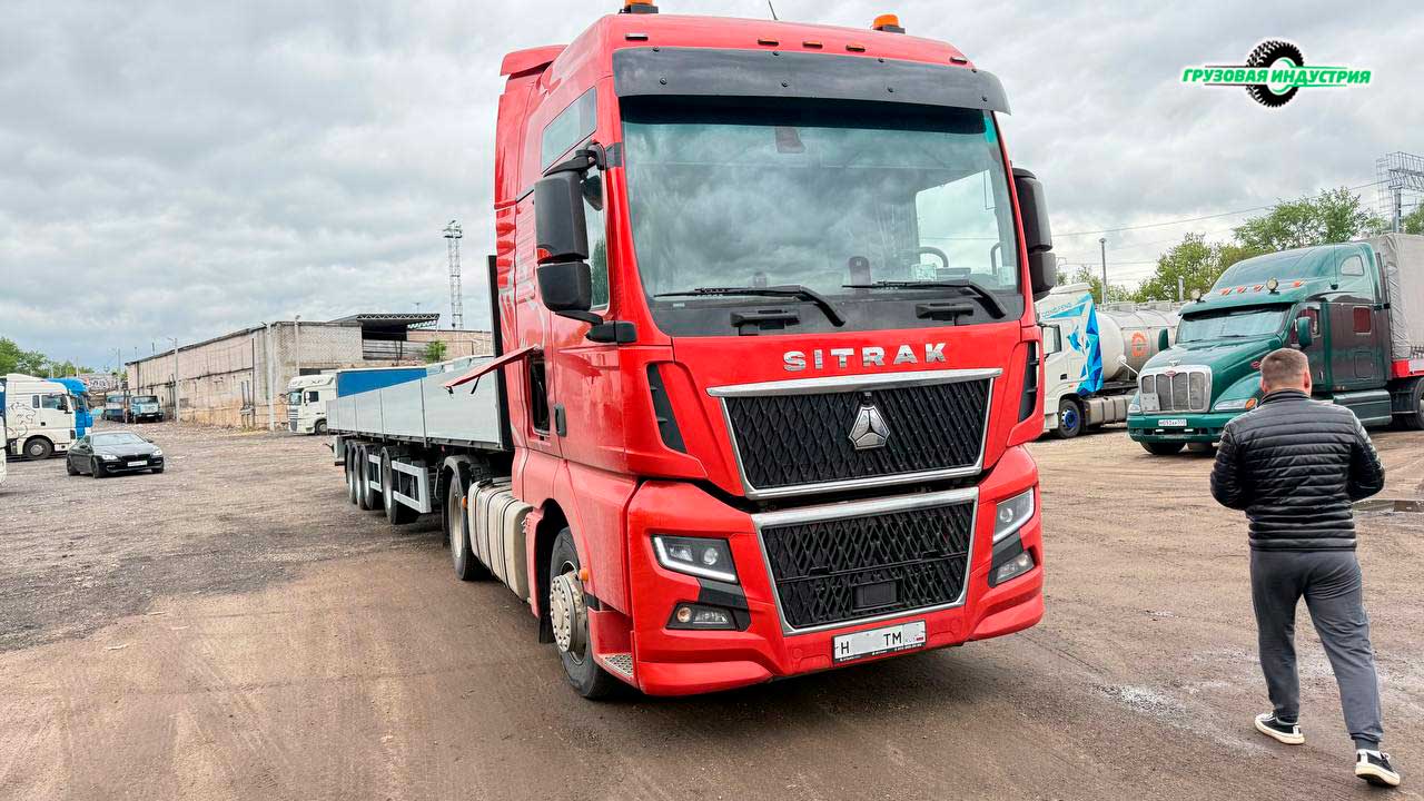 Отгрузка сцепки тягач Sitrak 4x2 и полуприцепа бортовая платформа Тонар B4-16VК в Санкт-Петербург.